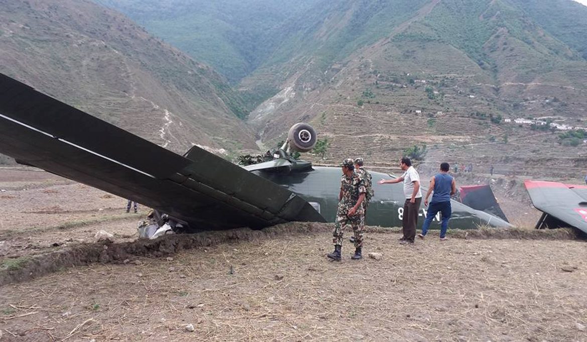 भीमदत्तनगर, १६ जेठ । नेपाली सेनाको कार्गो विमान आज मध्याह्न बाजुराको कोल्टी विमानस्थल छेउमै दुर्घटना हुँदा पाइलट कैलाश गुरुङको मृत्यु भएको छ ।