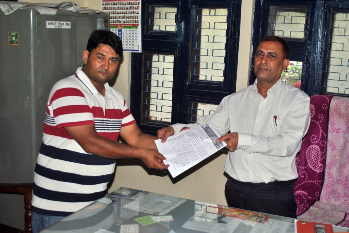 महासङ्घले बुझाएको ज्ञापन पत्र बुझदै निमित्त प्रजिअ पौडेलले घटना वारे जिल्ला प्रहरी कार्यालय पर्सासंग बुझ्ने बताउनु भयो ।