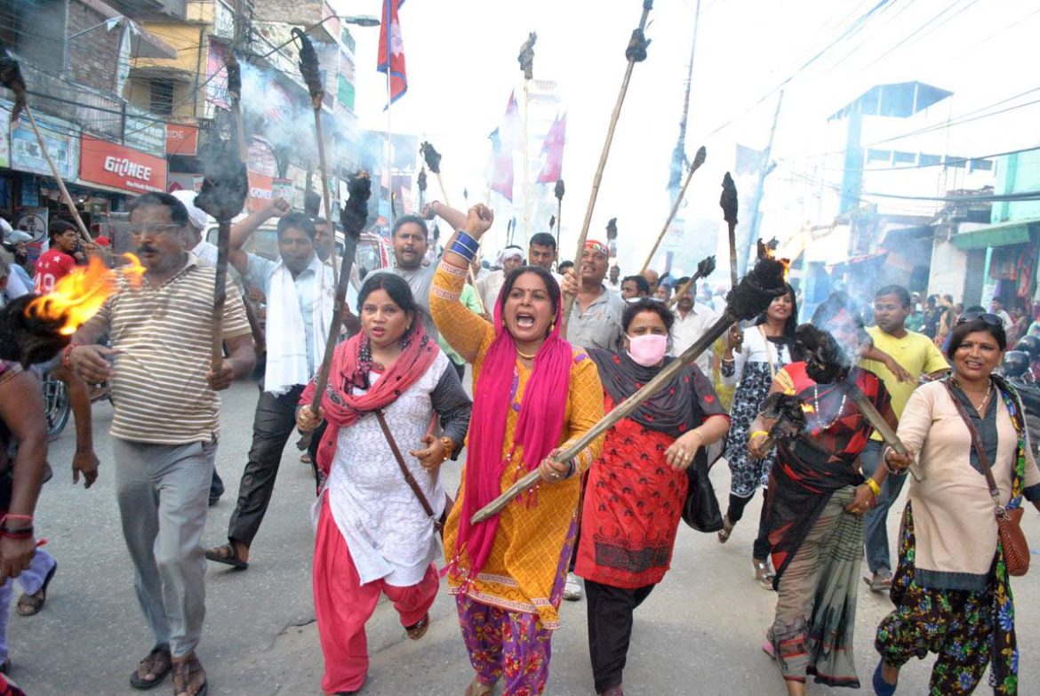 राजपा नेपालले आह्वान गरेको जेठ ३०, ३१, असार १ र २ गतेको बन्दलाई सफल बनाउन आह्वान गर्दै वीरगन्जको घण्टाघर चोकबाट निकालिएको मशाल जुलुश नगरको विभिन्न भाग परिक्रमा गरी माईस्थान चोकमा पुगी कोण सभामा परिणत भएको थियो । राजपा नेपाल पर्साका संयोजक पुरुषोत्तमलाल झाको अध्यक्षतामा सम्पन्न भएको कोणसभालाई सम्बोधन गर्दै पार्टीका नेताहरुले संविधान संशोधन गरी मधेसीको मुद्दालाई सम्बोधन नगरेसम्म कुनैपनि हालतमा निर्वाचन हुन नदिने उदघोष गरेका थिए ।