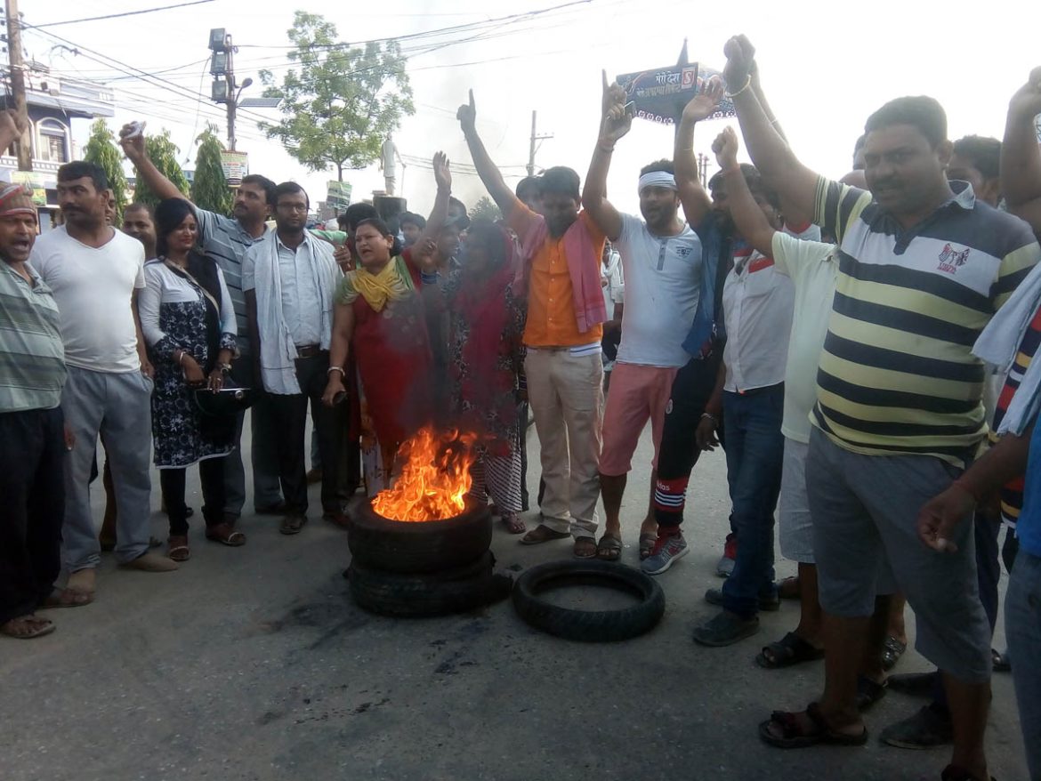 वीरगन्ज,३० जेष्ठ । राष्ट्रिय जनता पार्टी(राजपा) नेपालले आह्वान गरेको तराई मधेस बन्दको कारण पर्साको जनजिवन प्रभावित भएको छ । राजपा नेपालले आह्वान गरेको चार दिने बन्दको पहिलो दिन आज विहानै देखी बन्दलाई सफल बनाउने पार्टीका नेता कार्यकर्ता वीरगन्जको विभिन्न चोकमा टायर वाली प्रदर्शन गरेपछि जन जिवन प्रभावित भएको हो ।