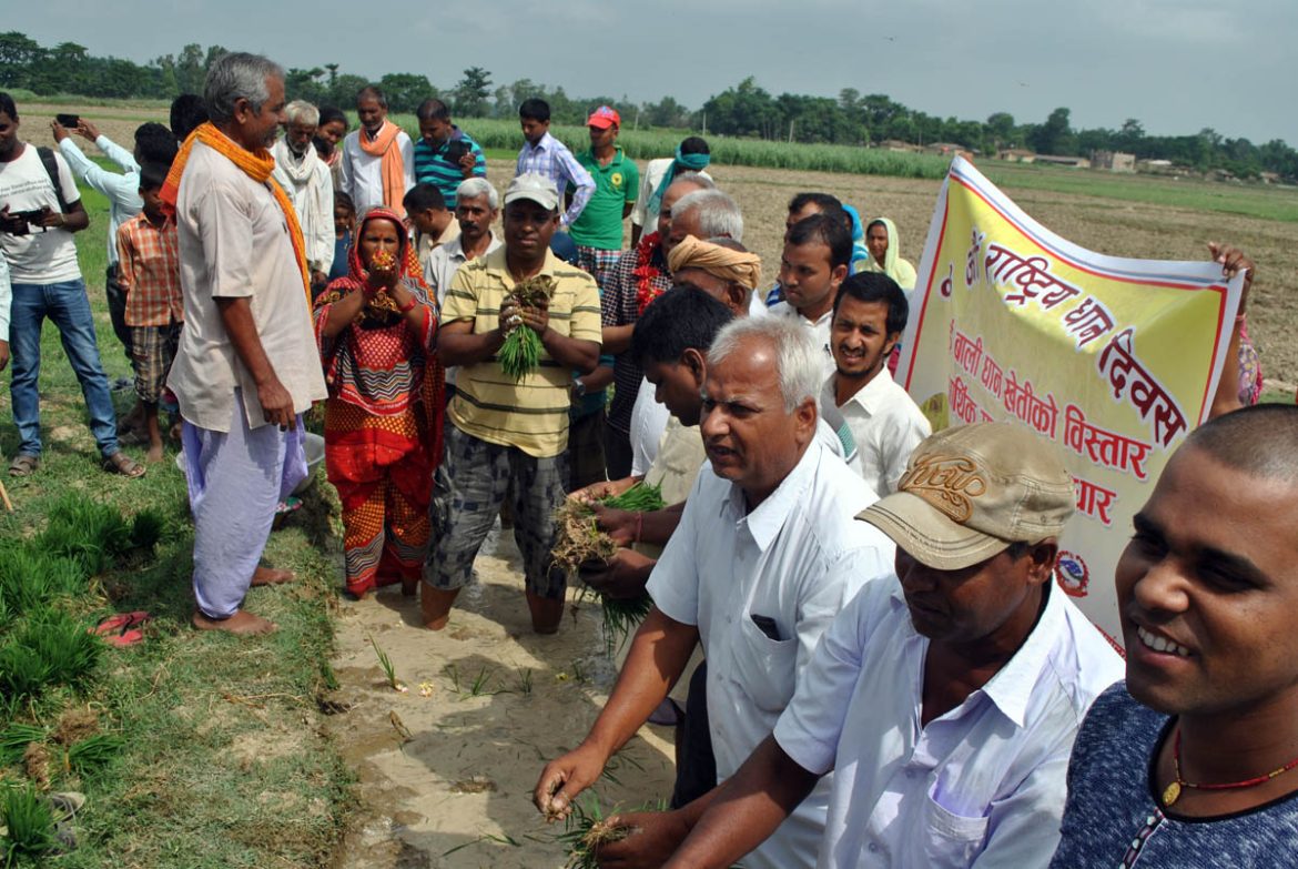 वीरगन्ज, असार । “दुई बाली धानको विस्तार आर्थिक समृद्धीको आधार” भन्ने मुल नाराको साथ आज पर्सामा १४ औं राष्ट्रिय धान दिवस धान रोपी मनाइएको छ ।