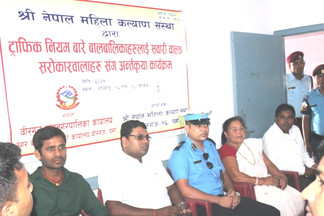 बीरगंज, असार । राधेमाई स्थीत रहेको ग्रेस उच्च मावीमा अध्यनरत कक्षा ९, र १० का १५० जना छात्रछात्राहरुलाई श्री नेपाल महिला कल्याण संस्थाद्वारा ट्राफिक नियम बारे बाल–बालिकाहरुलाई तिन दिने सवारी चालक सम्बन्धी अन्तरक्रीया कार्यक्रम सुरु भएको छ । बिरगंज महानगर पालिकाको आर्थिक सहयोग मा संचालित कार्यक्रम को अध्यक्षता श्री नेपाल महिला कल्याण संस्था की रेखा घिमिरे,प्रमुख अतिथि मा बिरगंज महानगर पालिकाका प्रकाश आमात्य, मुकेश गुप्ता, सामुदायक प्रहरी सेवा केन्दूका राम सरार्फ,प्र.ज.लाल माया गुरु·,अवधेश यादव, अमित यादव, ग्रेस उच्च मा.वी का प्रधानध्यापक रामविनेश कुश्वाहा,नेपाल टेलिभिजन का नेहाल खान, लगायत को उपस्थीती रहेको थियो ।