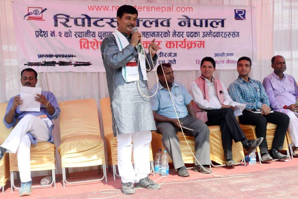 कार्यक्रममा नेकपा एमालेका तर्फबाट मेयरका उम्मेदवार बसरुद्दिन अंसारीले वीरगन्जको चौतर्फी विकासकालागि आफनो उम्मेदवारी रहेको बताउनु भएको थियो । त्यस्तै माओवादी केन्द्रका तर्फबाट वीरगन्ज महानगरपालिकाको मेयर पदका उम्मेदवार रहेका रोहबर अंसारी, राजपाका तर्फबाट उम्मेदवार रहेका राजेशमान सिंह, सघीय समाजवादी फोरम नेपालका तर्फबाट मेयर पदका उम्मेदवार विजय सरावगी लगायतका उम्मेदवारले युवा स्वरोजगार देखी वीरगन्जको विकास गर्ने उम्मेदवारी दिएको बताए छन् । अंकुश दैनिकमा समाचार छ ।