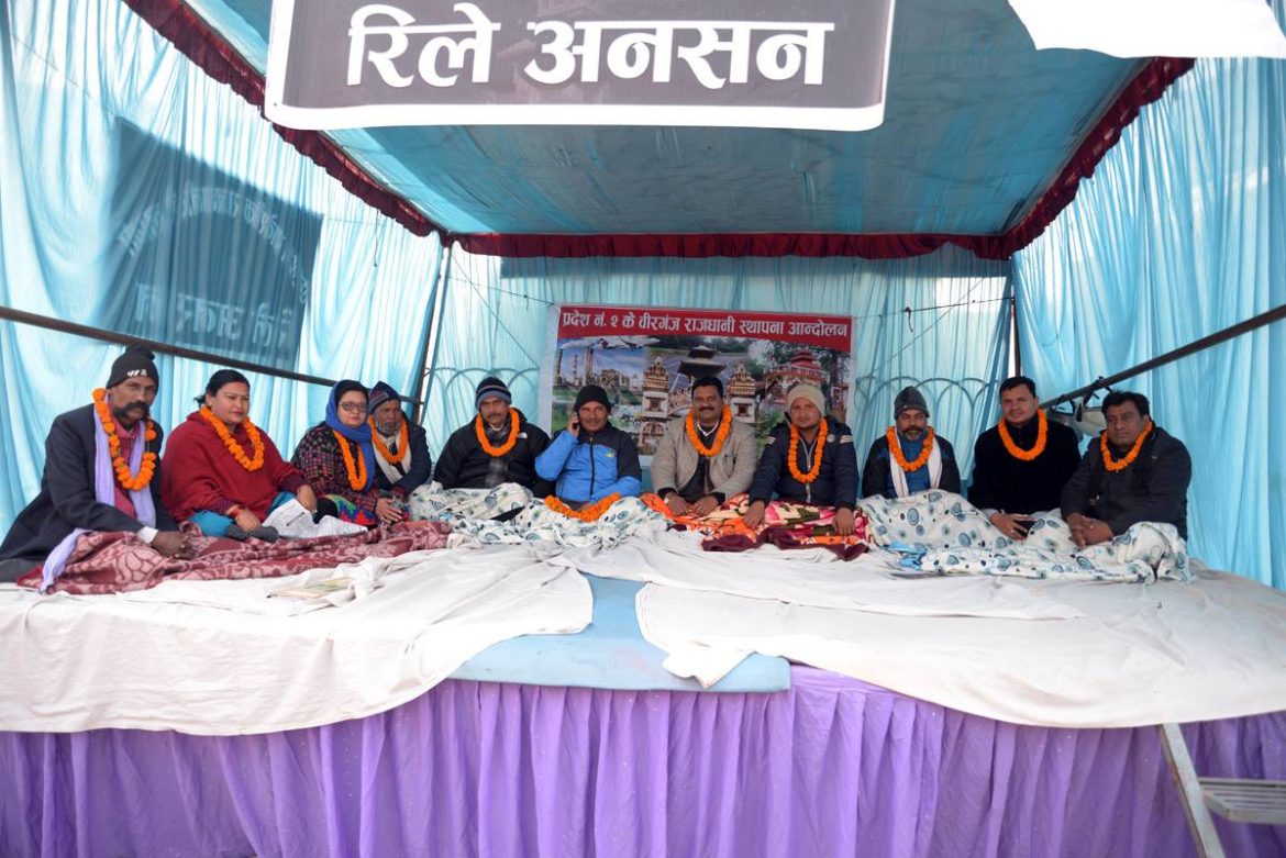 वीरगन्जलाई प्रदेश नम्बर २ को प्रादेशिक राजधानी बनाउनुपर्ने माग सहित गत शुक्रबारदेखि वीरगन्जको घण्टाघरमा शुरु भएको रिले अनसन पाँचौ दिन पनि जारी रहेको छ ।वीरगन्ज राजधानी संघर्ष समितिको अगुवाईमा प्रदेश नम्बर २ को राजधानी बीरगञ्जलाई नै बनाउनुपर्ने दबाब सहित रिले अनसन शुरु भएको हो ।