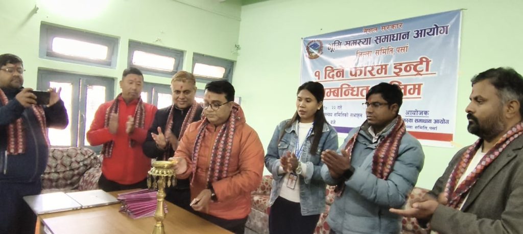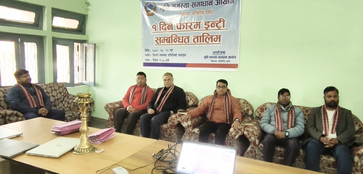 भूमि समस्या समाधान आयोग जिल्ला समिति पर्साले भूमिहीन दलित, सुकुम्बासी तथा अव्यवस्थित बसोबासीहरूको लगत सङ्कलन र प्रविष्टीकरण (Data Entry) कार्यलाई व्यवस्थित एवं प्रभावकारी बनाउने उद्देश्यले आयोजना गरेको एकदिने कम्प्युटर तालिम सम्पन्न भएको छ। आयोगका जिल्ला सदस्य–सचिव राकेश झाको अध्यक्षतामा वीरगञ्जमा आयोजित उक्त तालिम कार्यक्रम बिहीबार सफलतापूर्वक सम्पन्न भएको हो।