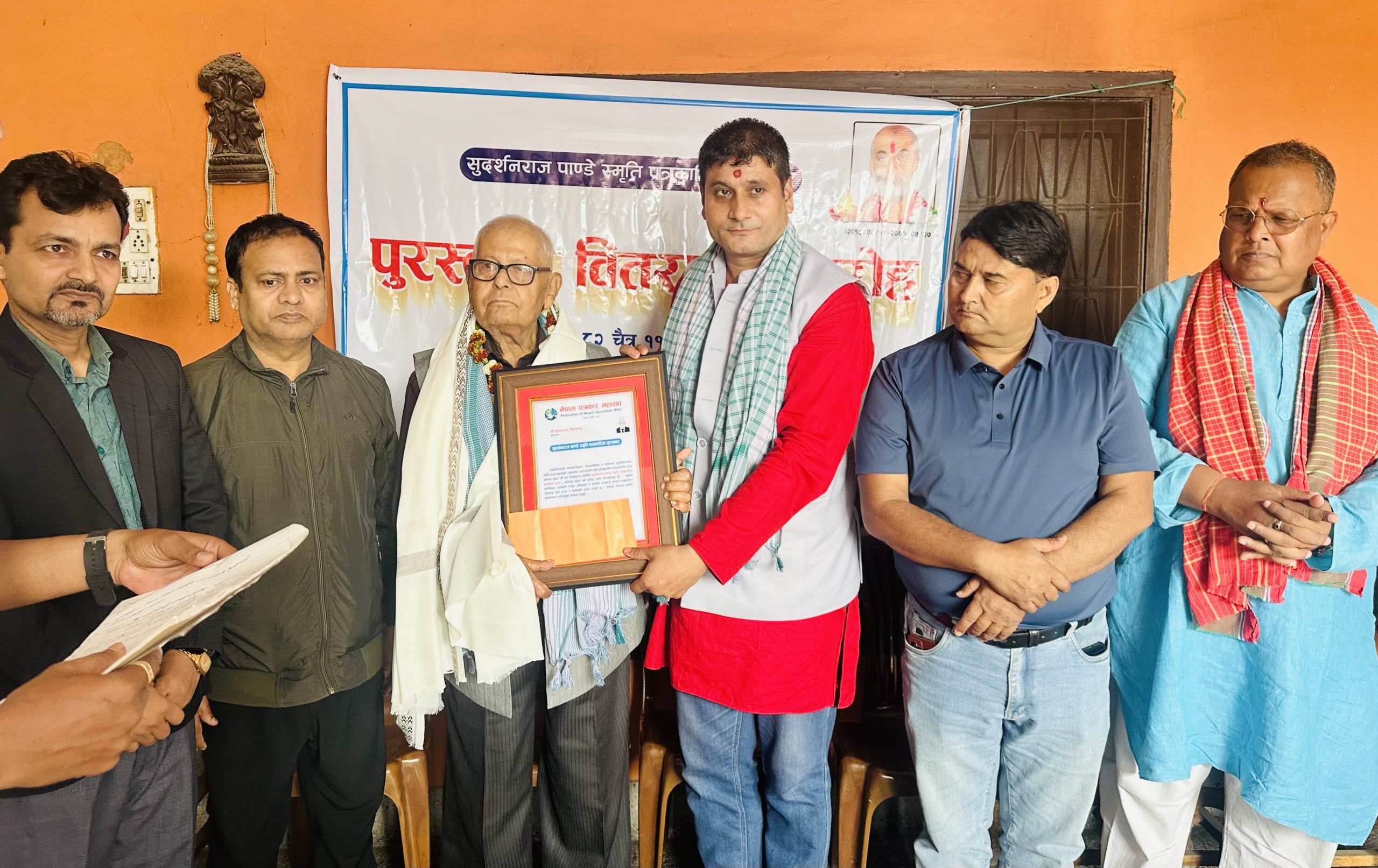 वरिष्ठ पत्रकार ईश्वरचन्द्र गौतम ‘सुदर्शनराज पाण्डे स्मृति पत्रकारिता पुरस्कार–२०८२’ बाट पुरस्कृत भएका छन्। पत्रकारिता क्षेत्रको व्यावसायिकता, विश्वसनीयता र संस्थागत सुदृढीकरणमा पुर्याएको अतुलनीय एवं दीर्घकालीन योगदानको उच्च कदर गर्दै नेपाल पत्रकार महासंघ, पर्सा शाखाले उनलाई उक्त पुरस्कार प्रदान गरेको हो। लामो समयदेखि सत्यतथ्य समाचार सम्प्रेषणमा अडिग रही आफ्नो कर्मनिष्ठा र समर्पित भावनामार्फत समग्र पत्रकारिता जगत्लाई नयाँ ऊर्जा र मार्गदर्शन प्रदान गरेको भन्दै उनलाई यस सम्मानबाट विभूषित गरिएको हो।